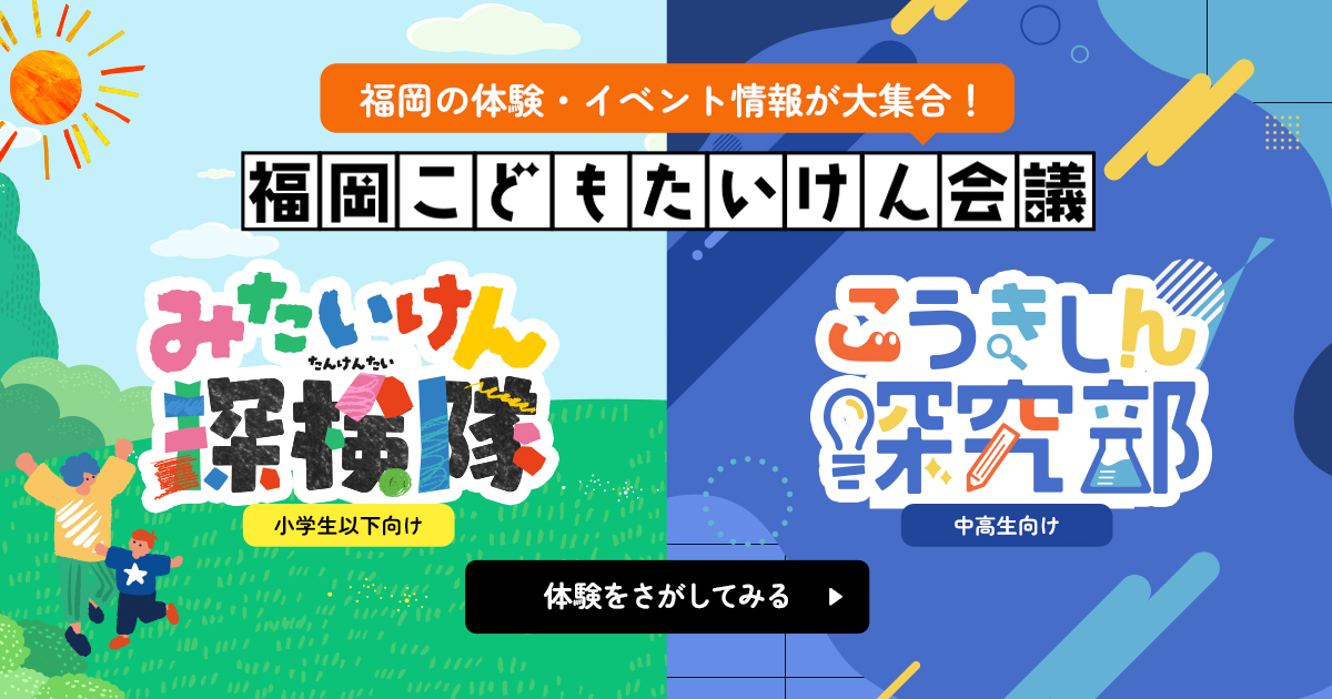 たいしょう 未就学児みしゅうがくじ 小学生しょうがくせい しゅるい 各体験活動について × 体験活動たいけんかつどうの種類しゅるいと具体例ぐたいれい 【しぜん体験たいけん】 自然環境しぜんかんきょうの中なかで、五感ごかんを使つかい動植物どうしょくぶつや自然現象しぜんげんしょうに直接ちょくせつ触ふれる活動かつどう 登山とざん、キャンプ、ハイキング、田植たうえ、稲刈いねかり、天体観測てんたいかんそく、動植物観察どうしょくぶつかんさつなど 【せいかつ体験たいけん】 日常生活にちじょうせいかつの中なかで自立じりつ心しんや社会しゃかい性せいを育はぐくむ活動かつどう 地域ちいきへのお祭まつりへの参加さんか、通学合宿つうがくがっしゅくでの生活体験せいかつたいけん、プレーパーク、料理りょうりやお菓子かし作づくり、昔むかしながらの遊あそび体験たいけん(こま回まわし、竹馬たけうま、けん玉だまなど)など 【しゃかい体験たいけん】 社会しゃかいでの役割やくわりを理解りかいし、協働きょうどうや貢献こうけんの意識いしきを育はぐくむ活動かつどう 職場体験しょくばたいけん、工場見学こうじょうけんがく、模擬店経営もぎてんけいえい、職業人講話しょくぎょうじんこうわ、インターンシップ、ボランティア活動かつどうなど 【ぶんか体験たいけん】 文化活動ぶんかかつどうに触ふれ、表現力ひょうげんりょくや感性かんせいを育はぐくむ活動かつどう 美術館びじゅつかん、博物館はくぶつかんめぐり、楽器演奏がっきえんそう、絵画制作かいがせいさく、演劇鑑賞えんげきかんしょう、伝統工芸体験でんとうこうげいたいけんなど 【かがく体験たいけん】 科学的かがくてきな現象げんしょうや原理げんりを実験じっけんや観察かんさつを通つうじて学まなび、自みずからの手てで何なにかを作つくり出だす活動かつどう 科学実験かがくじっけん、プログラミング、電子工作でんしこうさく、手芸しゅげい、木工もっこう、ペーパークラフト(紙飛行機かみひこうき、ジオラマ)など 【スポーツ体験たいけん】 体からだを動うごかすことを通つうじて、運動うんどうの楽たのしさや達成感たっせいかんを味あじわい、健康けんこうな心こころと体からだを育はぐくむ活動かつどう 野球やきゅう、サッカー、障しょうがいスポーツ、ニュースポーツなど しぜん体験たいけん せいかつ体験たいけん しゃかい体験たいけん ぶんか体験たいけん かがく体験たいけん スポーツ体験たいけん その他たの体験たいけん ひよう すべて 無料むりょう 有料ゆうりょう ちいき 北九州地域きたきゅうしゅうちいき 福岡地域ふくおかちいき 筑後地域ちくごちいき 筑豊地域ちくほうちいき 福岡県外ふくおかけんがい・海外かいがい 市町村しちょうそん すべての市町村 北九州市 福岡市 大牟田市 久留米市 直方市 飯塚市 田川市 柳川市 八女市 筑後市 大川市 行橋市 豊前市 中間市 小郡市 筑紫野市 春日市 大野城市 宗像市 太宰府市 古賀市 福津市 うきは市 宮若市 嘉麻市 朝倉市 みやま市 糸島市 那珂川市 宇美町 篠栗町 志免町 須恵町 新宮町 久山町 粕屋町 芦屋町 水巻町 岡垣町 遠賀町 小竹町 鞍手町 桂川町 筑前町 東峰村 大刀洗町 大木町 広川町 香春町 添田町 糸田町 川崎町 大任町 赤村 福智町 苅田町 みやこ町 吉富町 上毛町 築上町 県外の市町村・海外 もうしこみ すべて 新着しんちゃく 受付中うけつけちゅう 締切間近しめきりまぢか ならびかえ 申込日:降順 申込日:昇順 開催日:降順 開催日:昇順 きかん ~ 事業者じぎょうしゃ すべての事業者 福岡よかもんひろば! 株式会社鐘福組 株式会社ビー・エイド中西 福岡県 福岡県青少年団体連絡協議会 株式会社筑豊製作所 NPO法人SDGs Spiral トヨタ自動車九州株式会社 株式会社高瀬組 サンふくし合同会社 公益社団法人福岡県青少年育成県民会議 株式会社谷口組 株式会社佐藤建設 有限会社北山建設 株式会社三原産業 西光建設株式会社 株式会社へいせい 拓建工株式会社 アドベンチャーライフ合同会社 株式会社M・カンパニー 株式会社建築WithLife 株式会社新大倉 宮田建設株式会社 株式会社松田建設 株式会社フクモト 有限会社笹原 医療法人なかお歯科 一般社団法人 日本損害保険協会 宮本建設工業株式会社 株式会社Hy-Trust 福岡県立社会教育総合センター S-TEC 株式会社九州空調 マーベラ春日訪問看護ステーション 一般社団法人ガールスカウト福岡県連盟 株式会社クレアール こどもの夢を応援する株式会社 一般社団法人 福岡青年会議所 株式会社raise 株式会社クリデン JAみやざき 福岡営業所 株式会社アークス 株式会社西日本新聞社 株式会社田代土木 九州旅客鉄道株式会社 田丸造園建設株式会社 株式会社K.H.K 株式会社西日本シティ銀行 有限会社三協施設 興亜建設工業株式会社 大牟田支店 株式会社Skyward 特定非営利活動法人あそびとまなび研究所 株式会社テシマ工業 株式会社マルタイ 一般社団法人新宮町おもてなし協会 株式会社iGO 株式会社ワー
